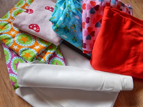 Da meinen Mädels die schönen bunten Stoffe gefallen haben, gab es gleich nach den Festkleidern viele weitere Hosen, Shirts, Röcklein, ... Inzwischen besteht ein Großteil der Kindergarderobe aus Selbstgenähtem.